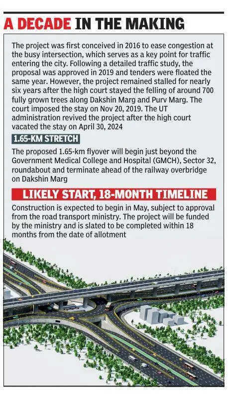 Chandigarh: The Punjab and Haryana high court on Wednesday made it clear that although the stay on the construction of a flyover in the Industrial Area has been vacated, the Chandigarh administration must ensure compliance with all environmental impact assessments and obtain requisite permissions before commencing work. The project is expected to take off from next month.During the hearing, advocate Tanu Bedi, who has been assisting the court as amicus curiae, submitted that the Chandigarh Master Plan-2031 does not recommend the construction of flyovers or over-bridges within the city limits and the provisions of the master plan cannot be bypassed. She submitted that the subcommittee that purportedly approved the project lacked the jurisdictional authority to approve such a major infrastructure intervention. The amicus also said the project would not only cause ecological damage by felling fully grown trees, but would also disrupt GMCH-32 operations, which is a designated silence zone.Responding to the contentions raised by the amicus, senior standing counsel for the UT administration Amit Jhanji informed that the project has already been cleared by a division bench of the high court after considering all the environmental concerns. The UT counsel also informed the HC that 2,799 saplings had already been planted as compensatory afforestation at a 5:1 ratio for trees proposed to be felled.The UT further said flyover is necessary as the commuters entering from Zirakpur and Delhi have been facing traffic congestion for more than one hour. The UT counsel also informed the bench that all the requisite environmental clearances and impact assessments would be done before commencing construction of the flyover project.The matter has now been adjourned for Friday for further hearing.