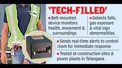 Hyderabad: A wearable device developed by the International Institute of Information Technology Hyderabad (IIIT-H) could significantly improve safety in high-risk industrial workplaces by ensuring that accidents are detected and reported instantly.Designed by Professor Abhishek Srivastava and his team at the Centre for VLSI and Embedded Systems Technology, the system, called ‘GoldAid’, is a compact, belt-mounted device worn by workers. It continuously monitors their movement, health and surroundings while they are on duty.“The device can detect a range of risks. It identifies falls, especially from heights, senses exposure to hazardous gases, and tracks vital signs such as heart rate, body temperature, oxygen levels and blood pressure. If any abnormal event occurs, such as a sudden fall or signs of medical distress, the system automatically sends an alert within seconds,” Srivastava said.These alerts are transmitted to a base station and then to a central monitoring system, where supervisors can track all workers in real time. An alarm is immediately triggered, enabling a quick response and medical assistance without waiting for someone to report the incident.“This is particularly important in large industrial settings such as thermal power plants, oil refineries and construction sites, where workers are spread out and accidents can easily go unnoticed. By removing dependence on manual reporting, the system ensures that even if a worker is unconscious or alone, help can still reach them quickly,” he added.The device also helps prevent accidents. Workers can log their normal health levels before starting a shift, and if the system detects unusual changes, it can alert supervisors early. This allows intervention before a situation becomes dangerous.“Using motion sensors and machine learning, the system can also assess how serious a fall is, distinguishing between minor slips and major accidents. Since all processing happens directly on the device, alerts are generated instantly without delays,” the professor said, adding that the system has already been tested in real-world environments, including a thermal power plant in Ramagundam and construction sites in Hyderabad.
