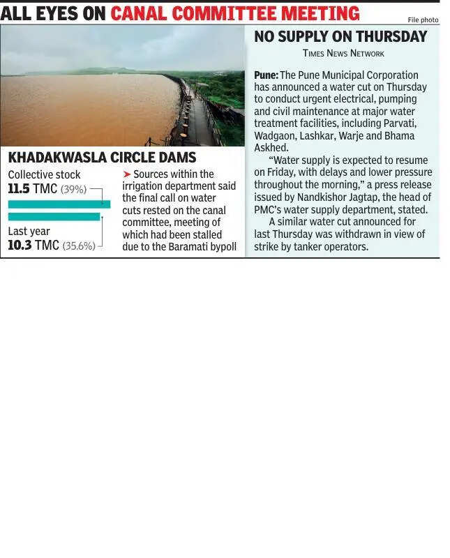 Pune: The Pune Municipal Corporation on Monday ruled out any plans to impose immediate water cuts in the city, despite mounting pressure from the state irrigation department, bringing major relief for several neighbourhoods already grappling with low pressure and patchy supply.The reassurance comes even as the irrigation department, flagging fears of El Niño and below-normal monsoon rainfall, had urged the civic administration a couple of weeks back to slash water supply by 15% to stretch dam reserves through the harsh summer months.Putting all speculations to rest, municipal commissioner Naval Kishore Ram said the administration was keeping a close watch but there was no plan to impose water cuts pull the plug, at least for now. “There is no proposal to reduce water supply with immediate effect. We are monitoring dam levels and daily lifting. If the situation demands it later, a decision will be taken accordingly,” Ram said.The municipal commissioner’s statement echoed the political mood within PMC, where corporators have strongly opposed any abrupt water cuts, arguing that the dams’ collective stock was better placed than last year. Irrigation department also backs their argument. On Monday, the combined storage in the four dams supplying water to the city stood at 11.5 TMC (39%), 1 TMC more than the 10.4 TMC (36%) recorded on the same date last year.For residents, the announcement came as a huge breather. With many neighbourhoods already complaining of erratic timings and weak flow, the prospect of formal cuts had sparked anxiety. Civic activists, meanwhile, continued to push for coordinated planning between Pune Municipal Corporation (PMC) and irrigation department to ensure the city did not stumble into a full-blown water crisis by peak summer.Resident Rakesh Gaikwad said imposing water cuts could not be a long-term solution. “The city is already facing a water shortage, which is leading to hardships among residents. Instead of imposing water cuts, the authorities should improve upon water distribution,” Gaikwad said.Earlier, the irrigation department had written to PMC urging restraint, saying reduced supply could help ensure water availability till Aug-end, instead of the more precarious July 15-mark. Officials from the irrigation department also claimed that PMC was currently lifting more water than its stipulated quota, adding another layer of tension to the back-and-forth.Rahul Kale, another resident, said PMC faced an uphill task in managing the city’s water supply during summer, despite all dams reaching full capacity during the previous monsoon. “Many areas still do not receive daily water and any supply cuts will worsen the situation,” he said.Standing committee chairman Shrinath Bhimale had last week firmly backed the administration’s stand, saying the city’s water supply would not be cut despite appeals from the irrigation department. The issue is, however, far from settled. Sources within the irrigation department said the final call on water cuts might come from the canal committee, a meeting that had been stalled due to the ongoing Baramati assembly byelection.