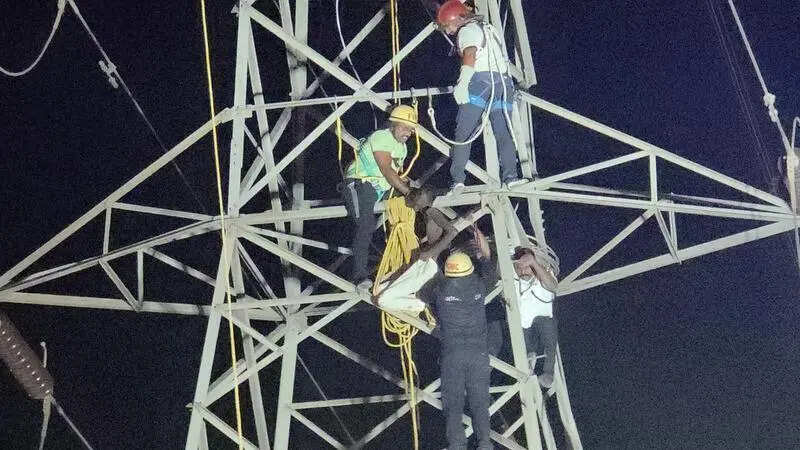 Pune: A three-hour rescue operation ended successfully on Monday night after a youth dubbed as ‘mentally unstable’ by the police climbed a 132 kV high-tension transmission tower in Nigdi’s Yamunanagar area.Besides bringing the unidentified youth down safely, authorities managed to avert a major power disruption event. Traffic had to be diverted onto the Bhakti Shakti-Talawade Road in Pimpri Chinchwad during the incident.A large crowd had gathered at the spot as the youth, perched more than 100ft (30-35m) high on the tower, allegedly performed risky stunts and hung from the support cables used to balance the tower.The rescue operation that followed involved fire brigade personnel, police and Maharashtra State Electricity Transmission Company Ltd (MSETCL) officials.Fire brigade officials said they received an alert around 9.15pm and rushed nearly 50 personnel to the site along with necessary equipment, including a 55m-high Bronto Skylift. “During the rescue, the man attempted to throw down a joint of the tower’s earthing wire, but fortunately no one was injured,” a fire brigade official said.Rushikant Chipade, fire officer of Pimpri Chinchwad Municipal Corporation (PCMC), said the rescue operation was delayed due to the dangers posed by the high-tension power line. “MSETCL officials took nearly an hour to shut down the supply, as power to such lines cannot be disconnected abruptly and a set safety protocol has to be followed. Even after the shutdown, we had to wait another half an hour because residual static current remains in the cables for some time. Once our team was able to reach the youth, he was brought down safely within 15-20 minutes using the available equipment,” he said, adding that the rescue was completed around 11.30pm.While MSETCL officials were in the process of shutting down the power supply, fire brigade personnel and police teams kept trying to persuade the youth to climb down, while a jumping sheet and tarpaulin were spread beneath the tower as a precautionary safety measure. The presence of huge crowd in the area, further complicated the rescue, an official said.A senior MSETCL official said supply on the affected line was disconnected for nearly two hours and 30 minutes as per protocol, but consumers did not face outages as alternate arrangements were made. “If backup arrangements were not available, a large number of consumers, including residential users and major industries such as the Bajaj plant, could have been affected,” the official said, adding that the power supply was resumed around 12.20am.He said officials were able to take a decision at their level since it was a 132 kV line, but in the case of higher-capacity transmission lines such as 220 kV, shutting down power in such situations involves a longer process and requires approval from senior management.Senior police inspector Mahesh Bansode of the Nigdi police station said, “The youth was taken into custody but appeared mentally unstable and was unable to reveal his identity. He has been sent to Yashwantrao Chavan Memorial Hospital (YCMH) for treatment. His identity is yet to be ascertained.” He added that no legal action has been taken in the matter.