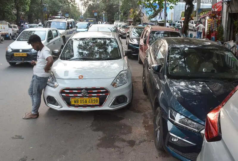 Kolkata: Rampant on-road parking is choking Kolkata’s already strained road network, with transport officials warning that unchecked encroachment of carriageways is severely impacting mobility across the city. “In a city with extremely limited road space, parked vehicles are reducing usable carriageway and slowing down traffic,” said a transport department official.Kolkata has just 6% of its total area under roads, far lower than the 18%-23% seen in other Indian metros. Since the pandemic, the number of private vehicles has surged, and officials estimate that a large share of car owners lack dedicated garages and rely on roadside parking often because it is inexpensive or free. Bus operators say the situation has reached a breaking point. “Even on major corridors, buses struggle to move. It is difficult to manoeuvre large vehicles, especially during peak hours,” said Titu Saha, secretary, City Suburban Bus Service. “On-street parking is effectively dead weight. A ‘no-garage, no-car’ policy must be considered, along with multi-level and mechanical parking solutions,” said Dipankar Sinha, former DG (Town Planning).